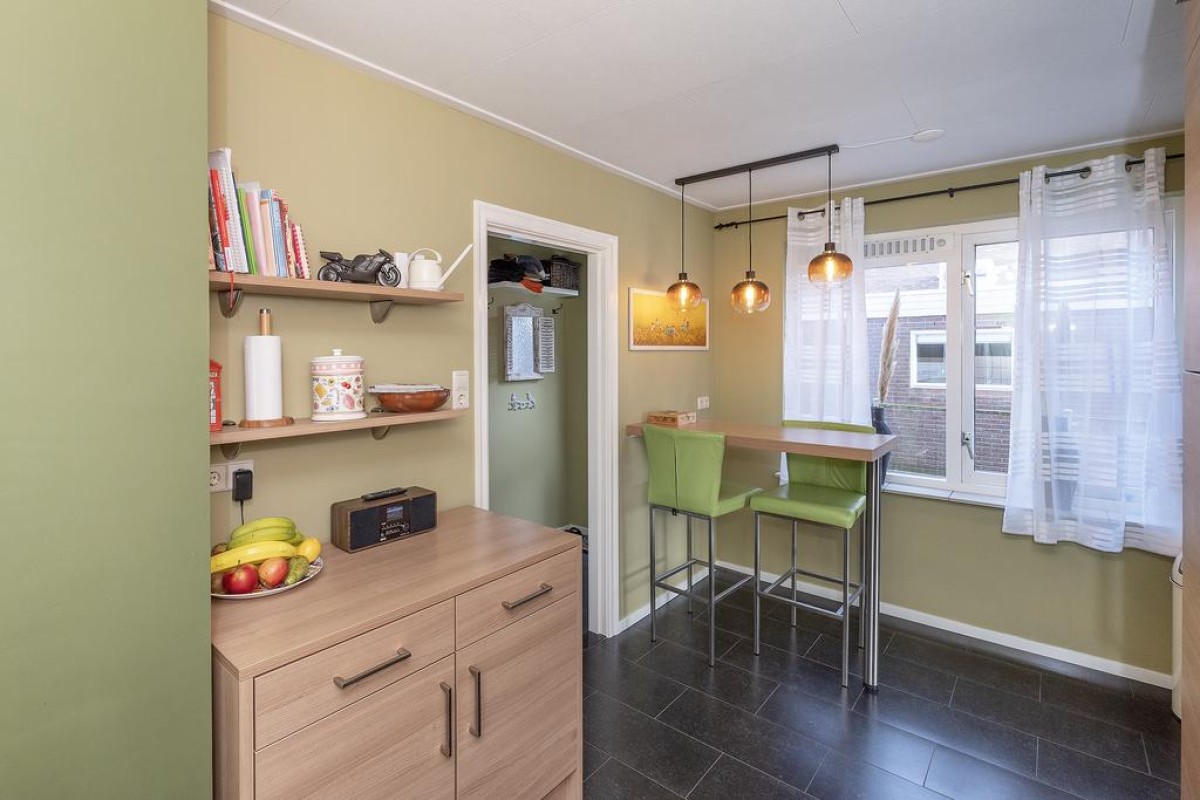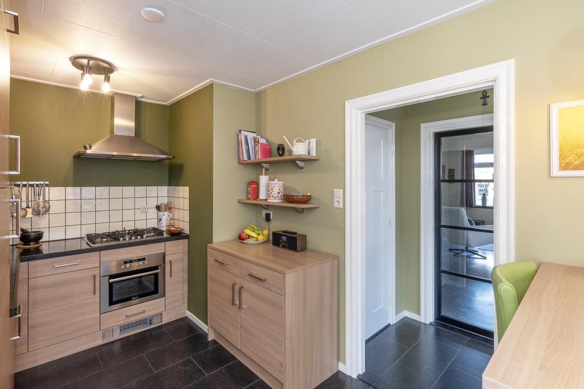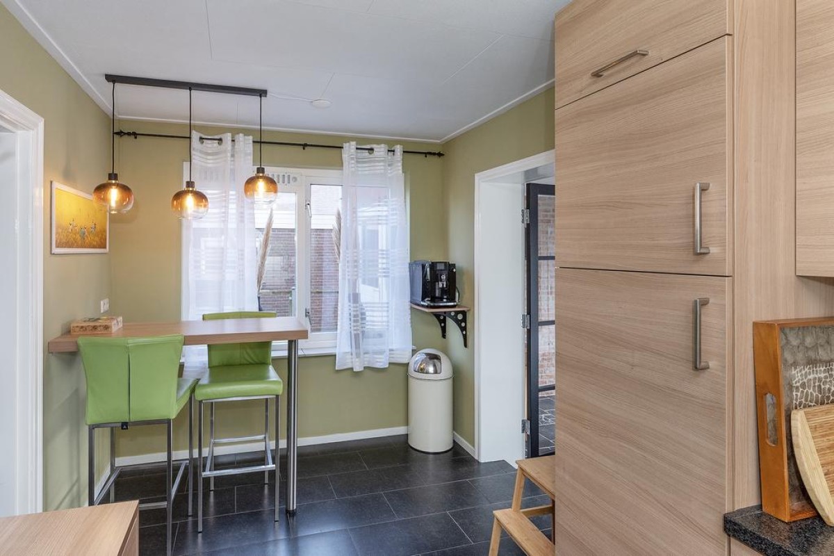 Terug beneden lopen we vanaf de voordeur links de royale en complete woonkeuken in welke is voorzien van combimagnetron, gaskookfornuis, koelkast met vriesvak, vaatwasser en een fijne bar.