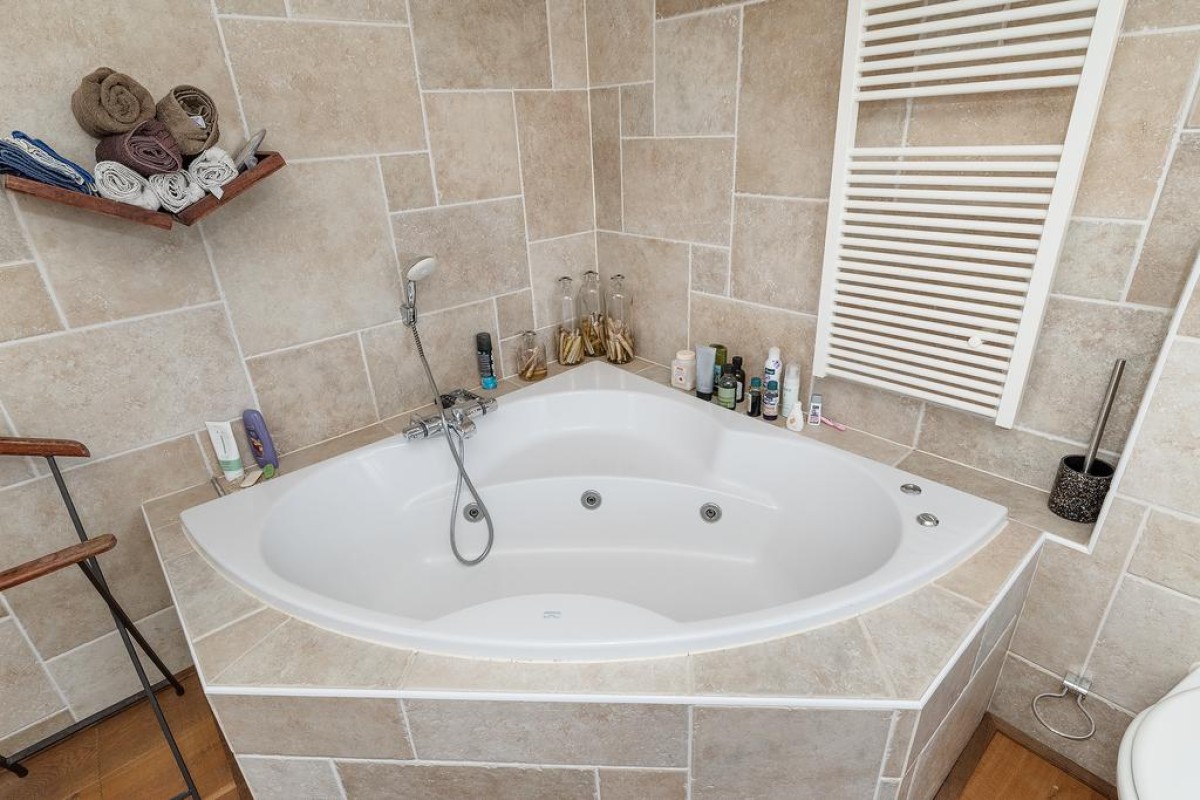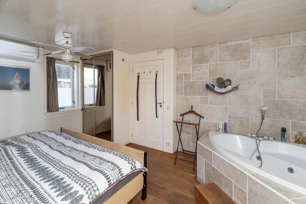 Eenmaal op de verdieping treft u een riante overloop waar zelfs een aparte kamer in zou passen. Aan de voorzijde is, over de gehele breedte van de woning, de master bedroom met airconditioning (2021) gesitueerd. Deze is uitgerust met een open badkamer voorzien van o.a. wastafel, toilet en fraai hoekbubbelbad.