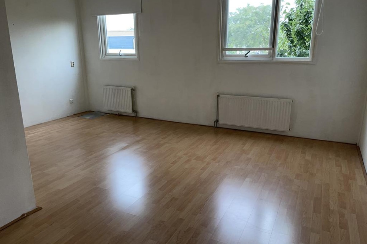 Je komt binnen in de hal. Aan de voorzijde van de woning is de keuken gesitueerd. De woonkamer is over de volledige breedte van de woning aan de achterzijde gesitueerd.