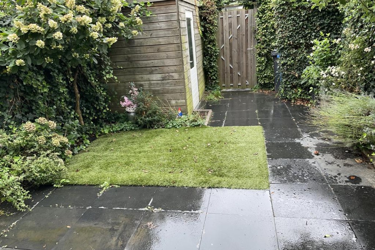 Deze woning heeft een voor- én achtertuin. De voortuin grenst aan het water en heeft genoeg ruimte voor een bankje om van het zonnetje te genieten. De achtertuin ligt op het westen en heeft volop zon.
