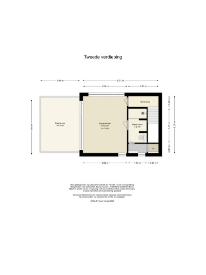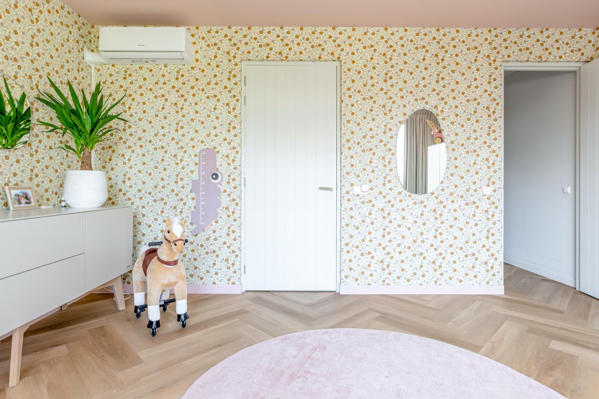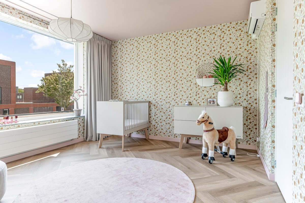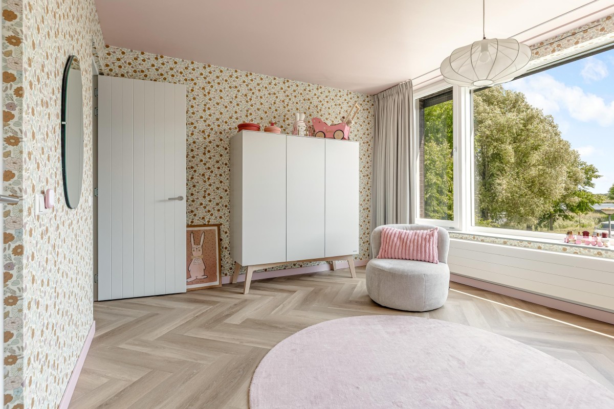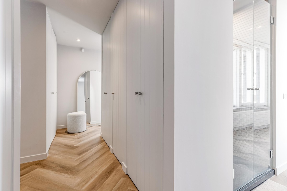 Overloop met toegang tot de derde slaapkamer, ook met eigen badkamer. Deze badkamer beschikt over een inloopdouche, wastafelmeubel en toilet. De kamer heeft via een grote schuifpui toegang tot een (onofficieel) dakterras met prachtig uitzicht over de Noorderplassen. Ook deze kamer is voorzien van een airco-unit en een hoogwaardige pvc-vloer.