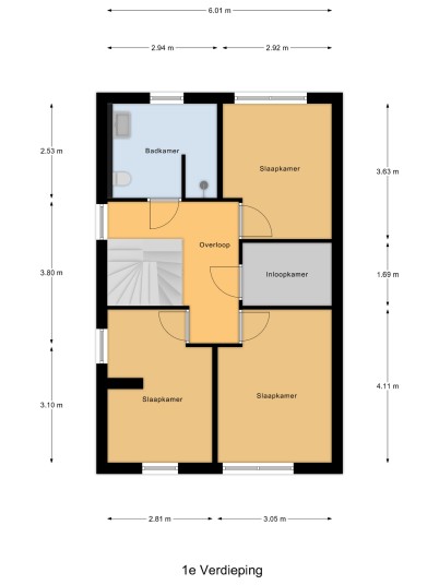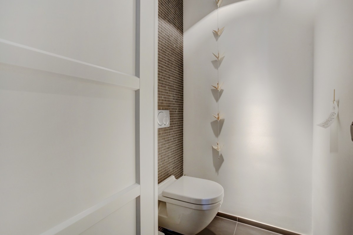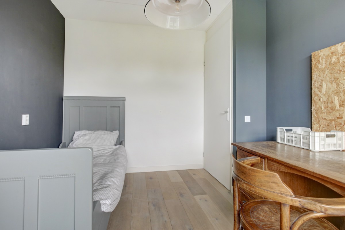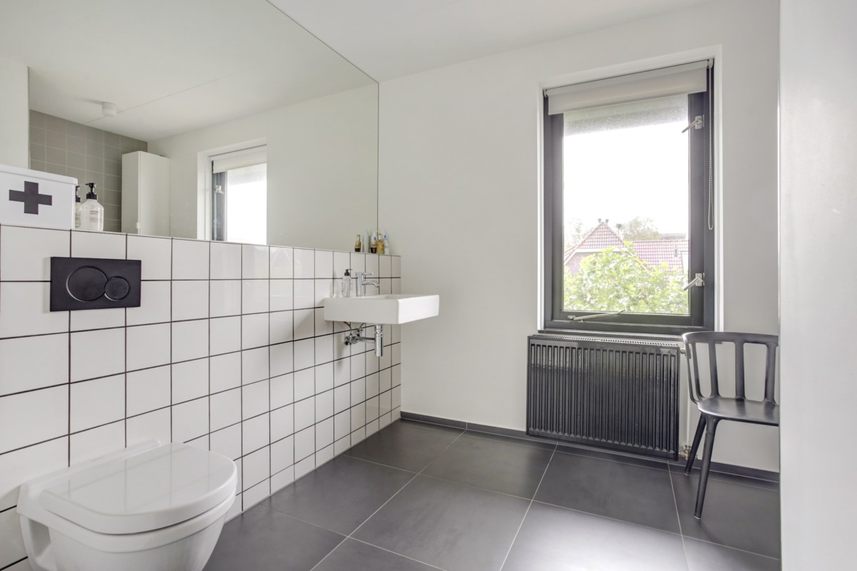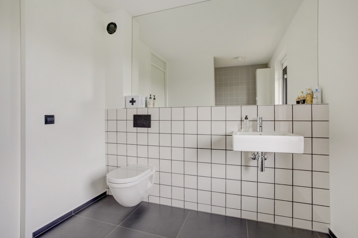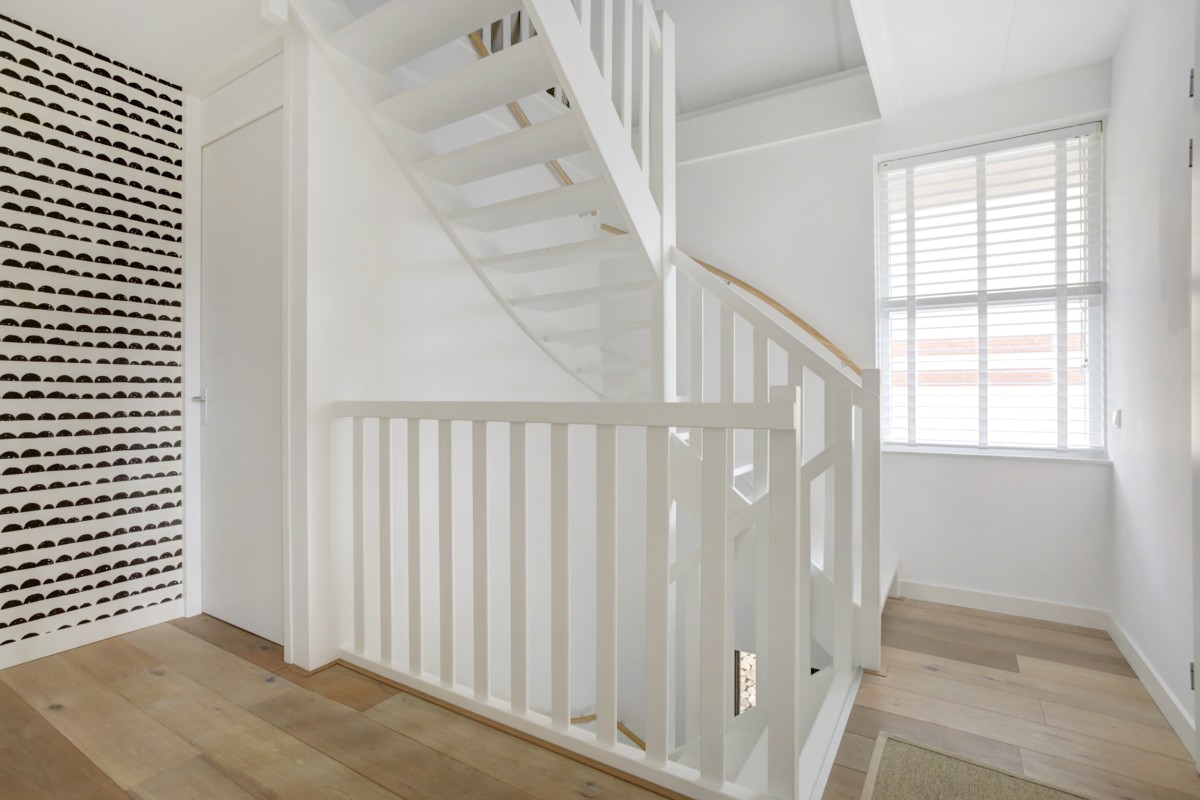 Eerste verdieping: ruime lichte overloop met aansluitend drie royale slaapkamers, een walk-in-closet en een luxe badkamer. De overloop, walk-in-closet en slaapkamers zijn voorzien van een mooie houten vloer, met hoge plinten en onderhoudsarme wandafwerking. De luxe badkamer is sfeervol ingericht en voorzien van een wastafel, 2e hangcloset en een volledig betegelde inloopdouche.