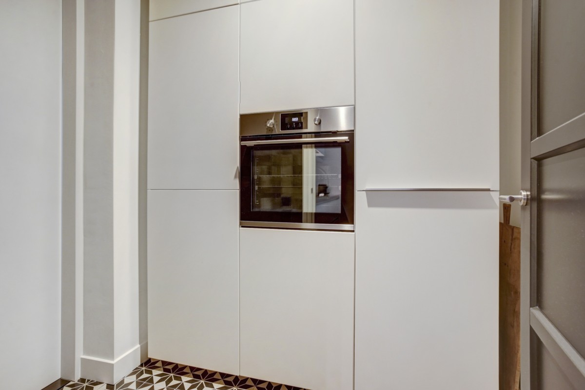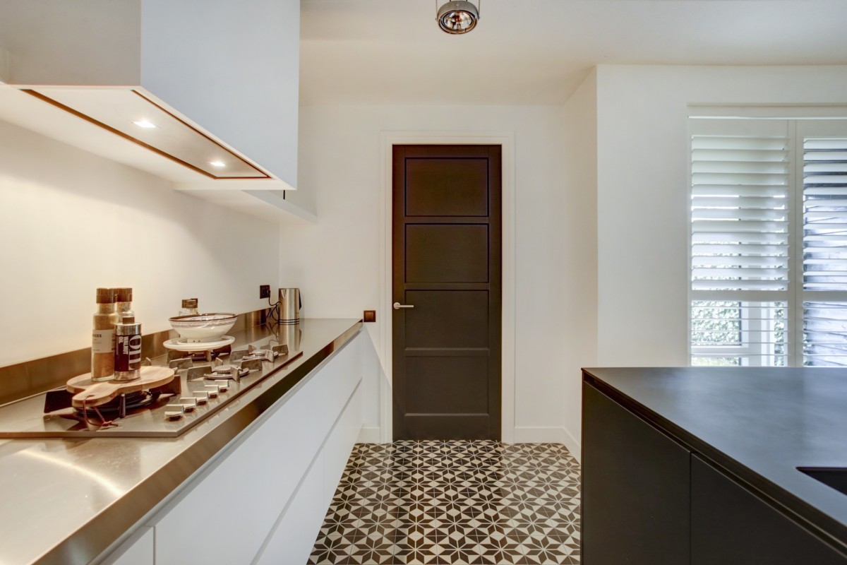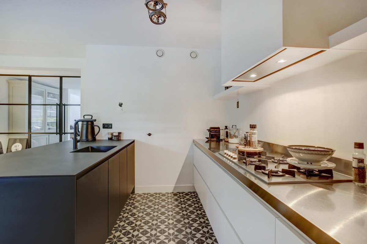 * Professionele keuken met ingebouwde apparatuur en fraaie tegelvloer
