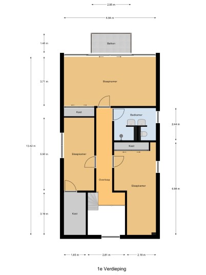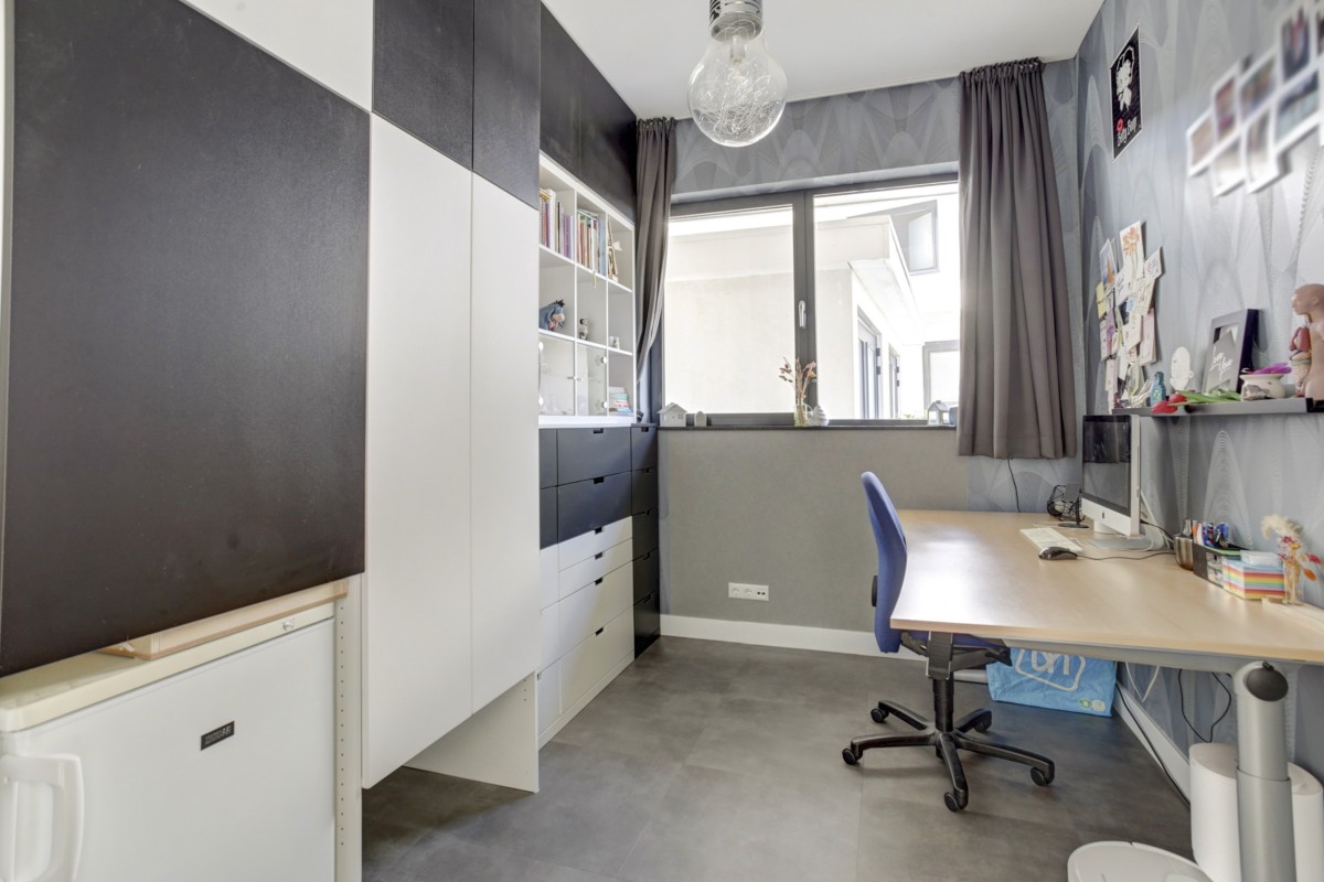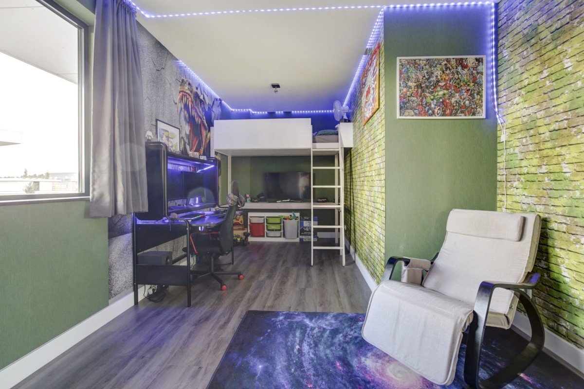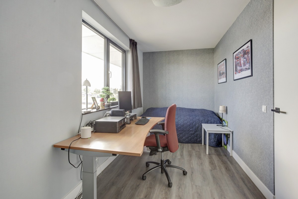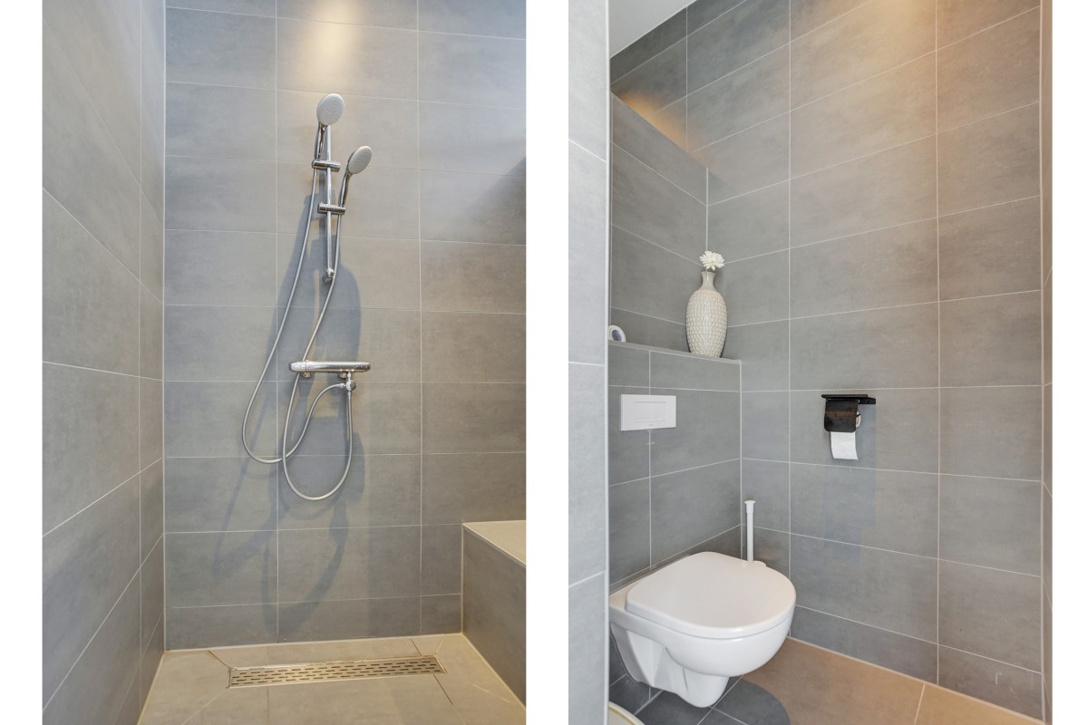 Eerste verdieping: mooie open trap met vide naar de ruime lichte overloop met aansluitend 3 grote slaapkamers en de 2e badkamer. De luxe badkamer beschikt over een ruime inloopdouche, 2e hangcloset, elektrische designradiator en dubbele wastafel. De grote slaapkamer aan de achterzijde is voorzien van een schuifpui naar een balkon met prachtig weids uitzicht over het water en de woonwijk. Tevens beschikt deze verdieping over een zeer riante berging. Twee slaapkamers zijn eveneens voorzien van vaste kasten van Storhus.