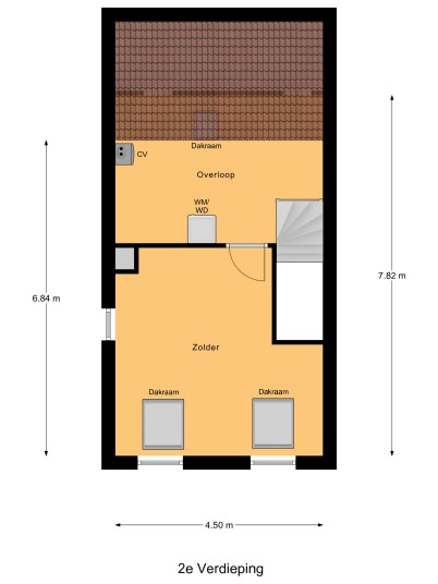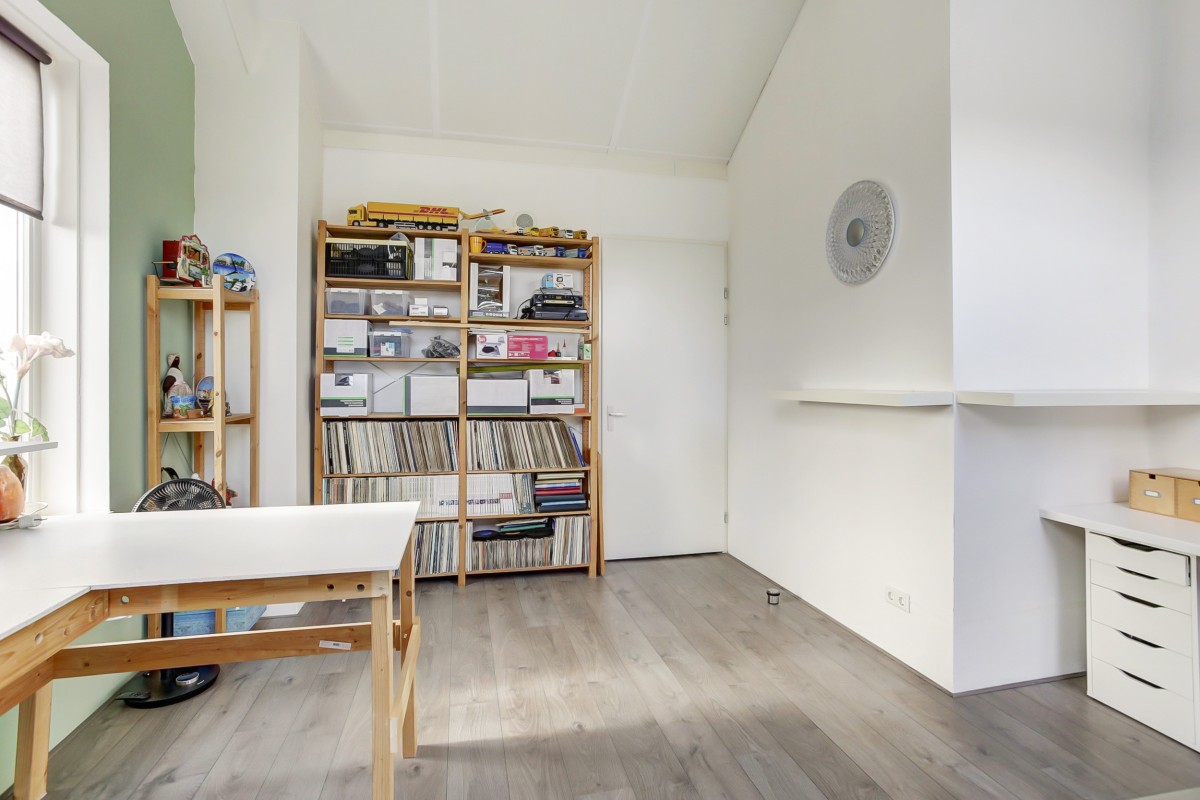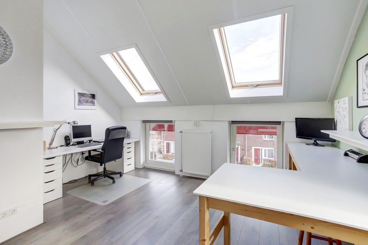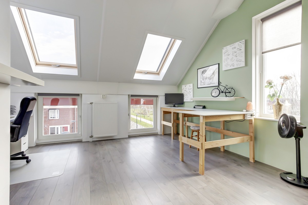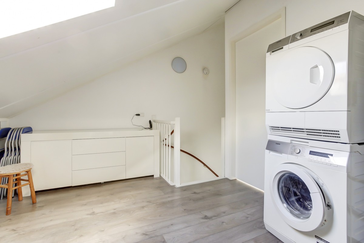 Tweede verdieping: vaste trap naar ruime zolderverdieping met groot dakraam. Op deze verdieping is de opstelplaats van de wasmachine, droger, Brink passief-huis verwarmingssysteem, balansventilator en omvormer voor de 11 zonnepanelen te vinden. Deze verdieping beschikt tevens over praktische opbergruimte achter de knieschotten. Aan de voorzijde van de woning is een prachtige 3e slaapkamer gesitueerd welke beschikt over mooie hoogtewerking, gevelramen en dakramen met elektrische rolluiken.