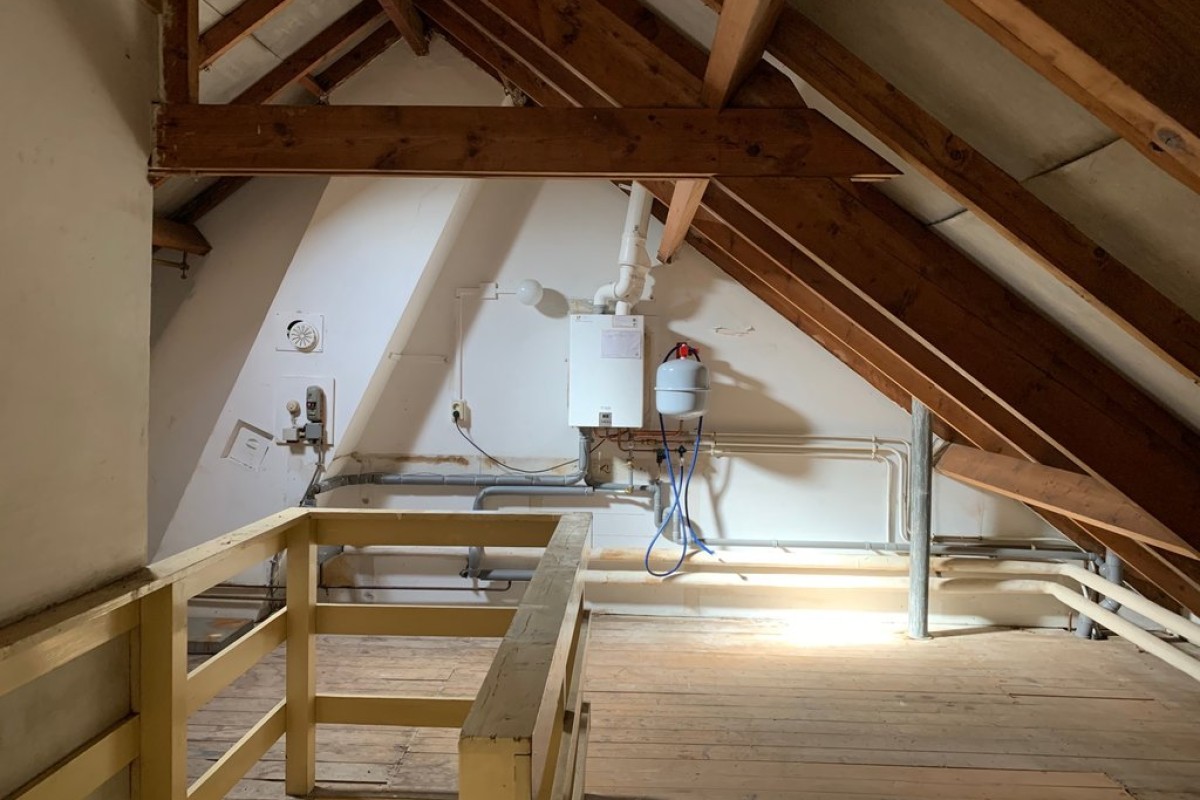 2e Verdieping: deze verdieping is middels een vaste trap te bereiken. Op dit moment is de verdieping ingedeeld in twee ruimtes en beschikt over veel bergruimte. Tevens is hier de opstelling voor de c.v.-ketel te vinden (Remeha Avanta)