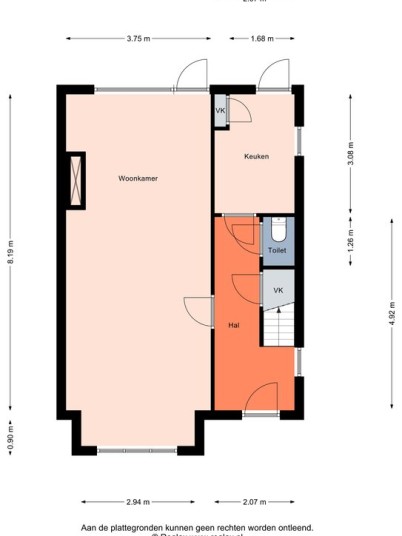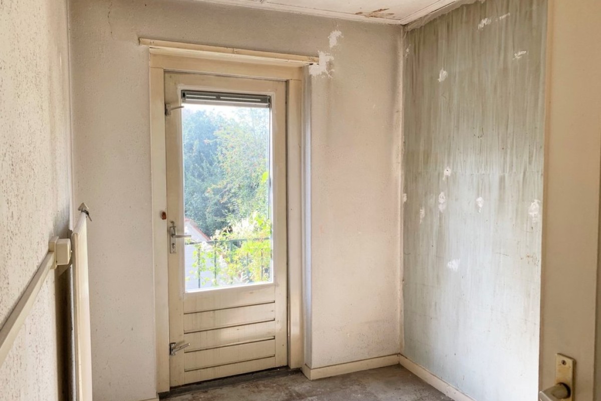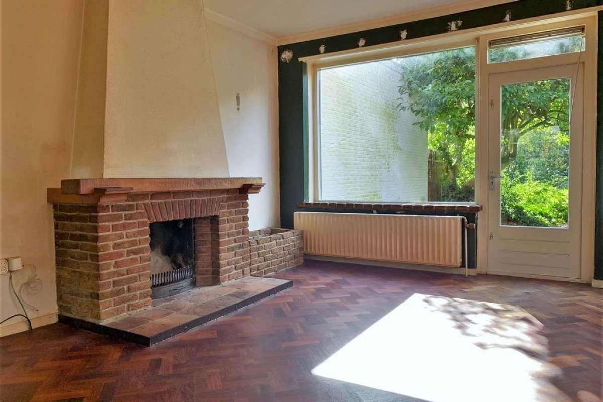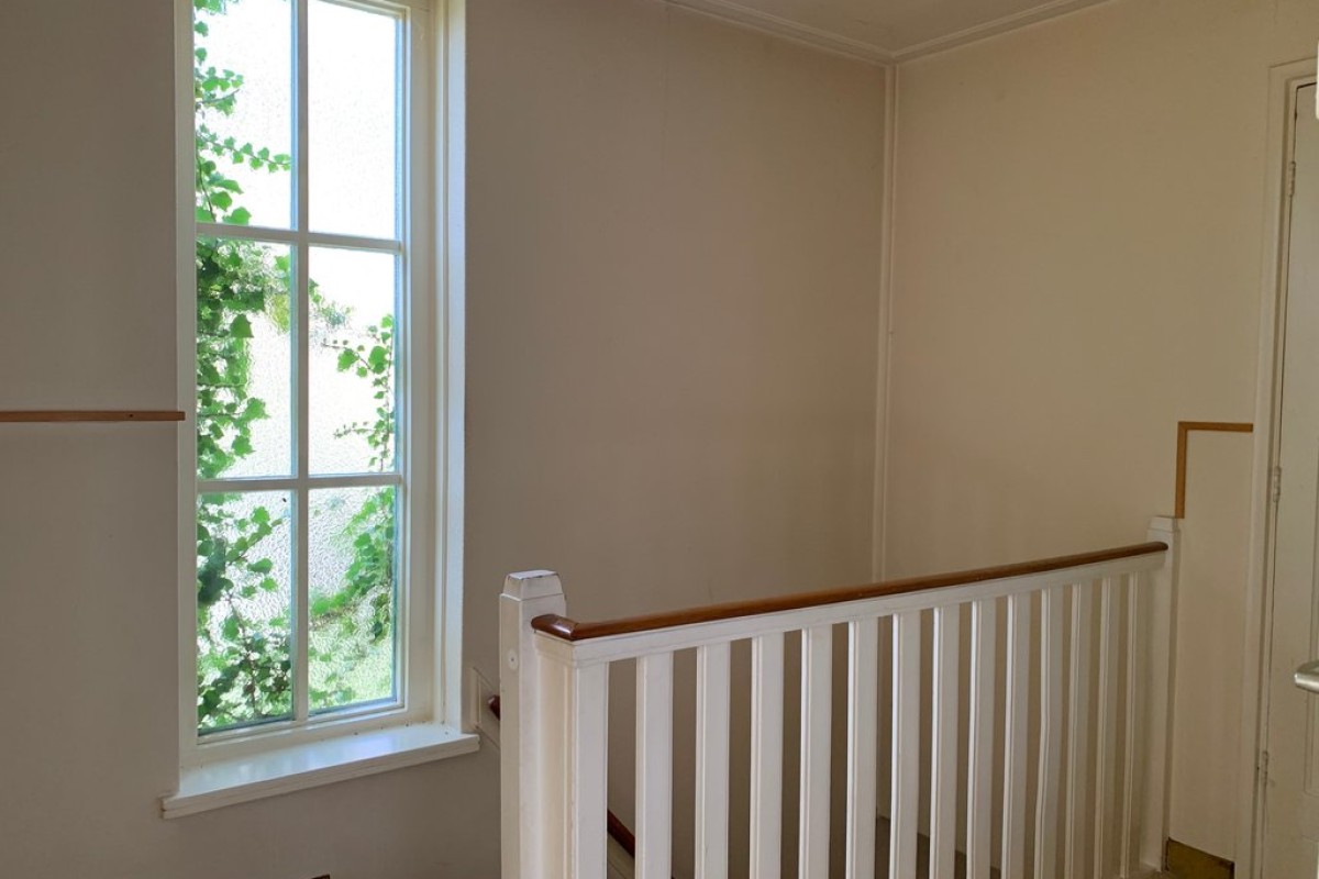 Begane grond: entree, hal met trapopgang, toegang naar de grote kelder, toilet, dichte keuken, royale woonkamer met erker aan de voorzijde;