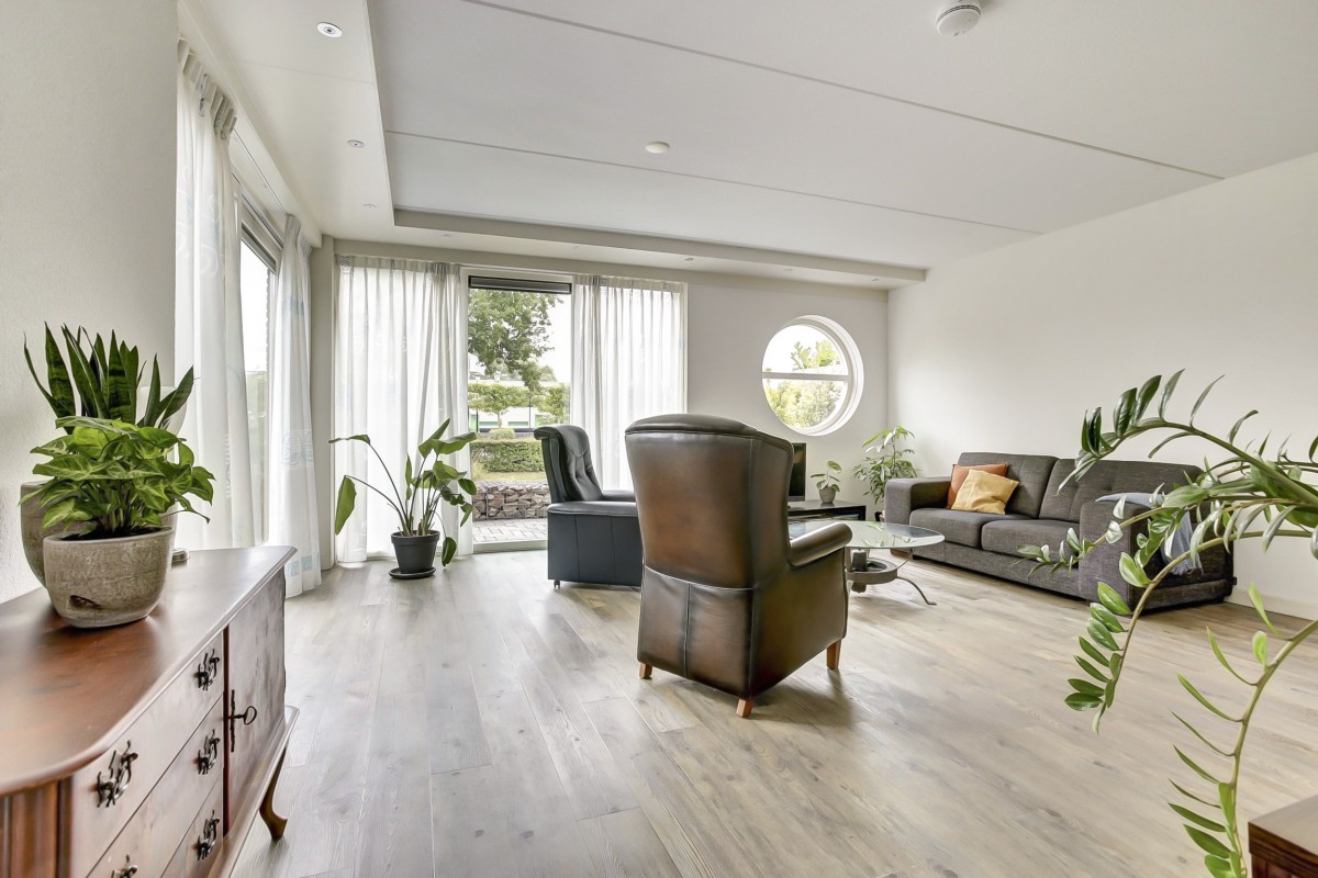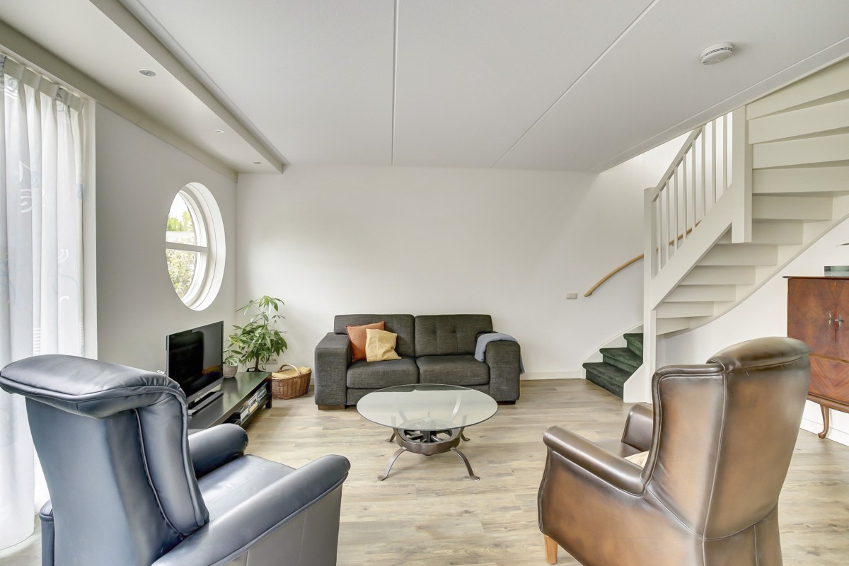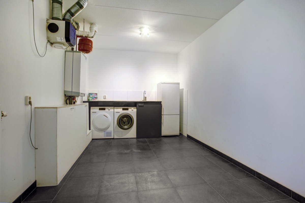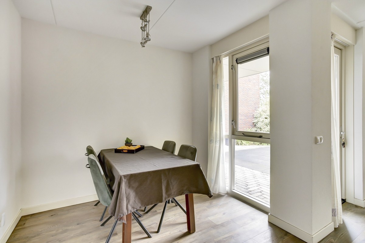 Vanuit de hal kom je in de luxe moderne open keuken met aangrenzend de eethoek en doorgang naar de woonkamer. De keuken is voorzien van veel kastruimte en beschikt over een ingebouwde koelkast, vaatwasser, 1,5 spoelbak, combimagnetron, 4 pits inductie kookplaat en een rvs afzuigkap en een loopdeur naar de tuin. De tuingerichte woonkamer is ruim van opzet en heerlijk licht door de grote raampartijen. De woonkamer is voorzien van een dichte vaste trap naar de etage en een schuifpui naar het terras en de tuin.