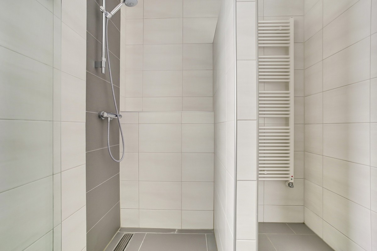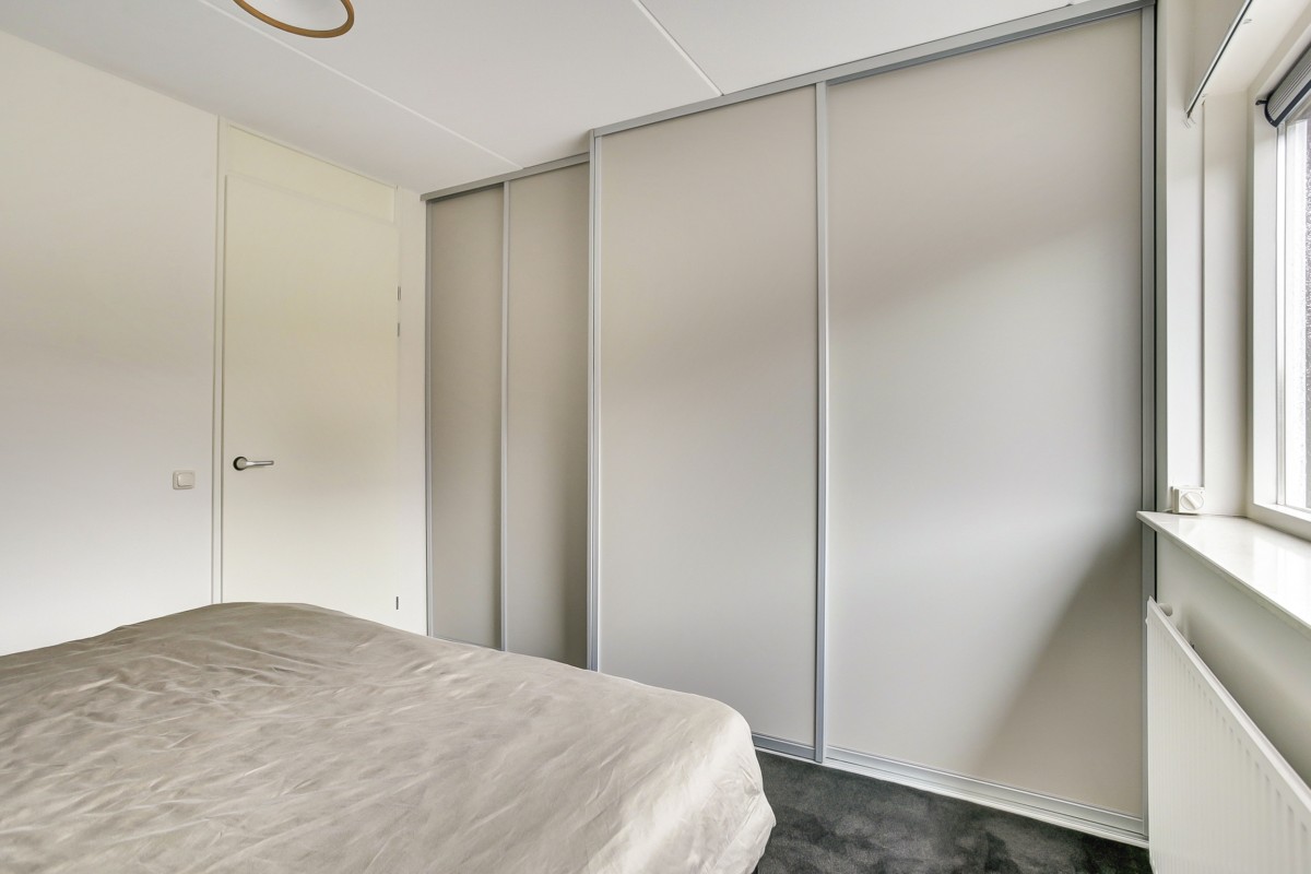Vanuit de hal zijn tevens de twee slaapkamers op de begane grond te bereiken. Aan de voorzijde van de woning zij een ruime slaapkamer en badkamer gesitueerd. De slaapkamer is voorzien van een op maat gemaakte inbouwkast en de badkamer beschikt over een inloopdouche met glasdeur, designradiator, vloerverwarming en een wastafel. Aan de achterzijde is de 2e slaapkamer gelegen welke tevens van een prettige maatvoering is en is voorzien van een deur naar het terras. De begane grond vloer is voorzien van pvc vloeren waarbij de slaapvertrekken zijn voorzien van tapijt.