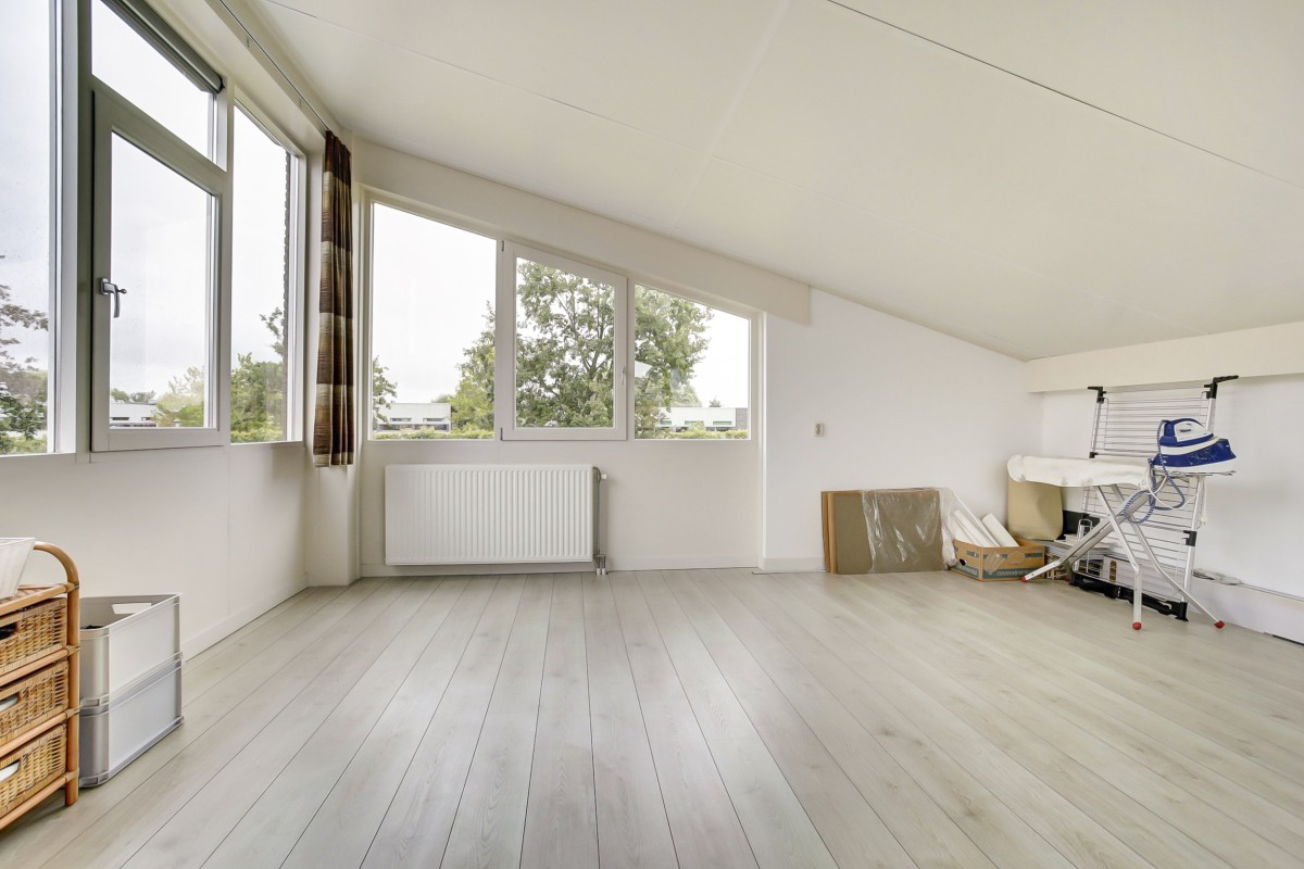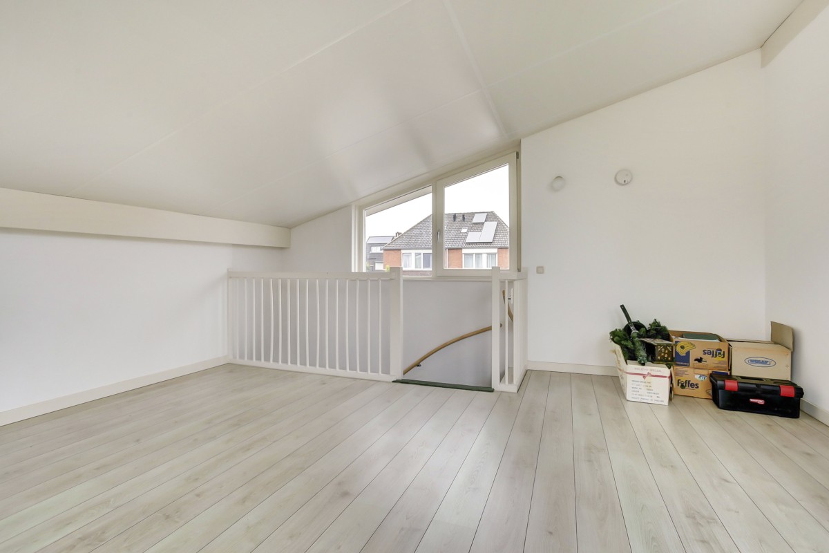 Eerste verdieping: vast trap naar de ruime en lichte verdieping met de mogelijkheid om hier nog een slaap en badkamer te realiseren. De volledige eerste etage is voorzien van een nette laminaatvloer.