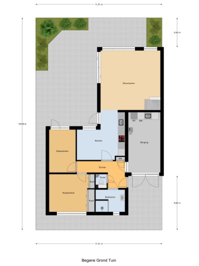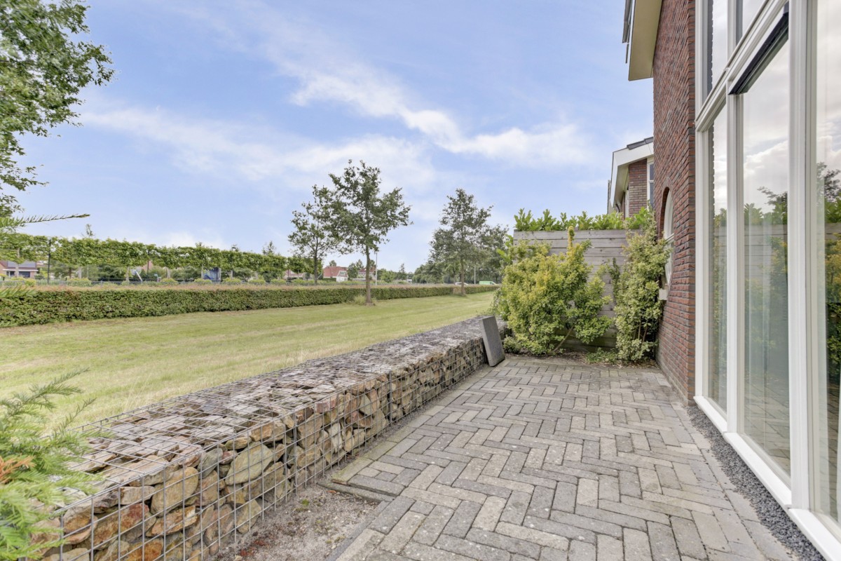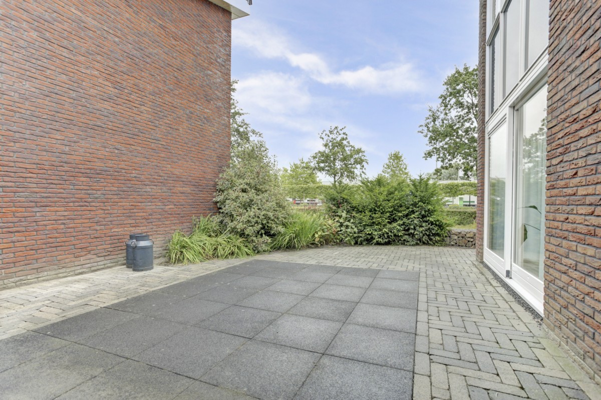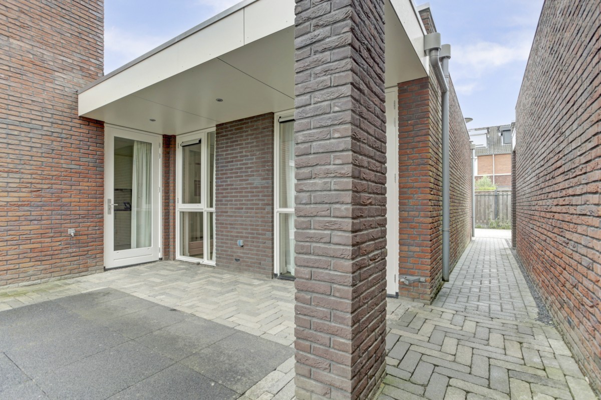 De tuin is vanuit de kleine slaapkamer en de eethoek met een loopdeur te betreden en vanuit de woonkamer middels een schuifpui met hor te betreden en is onderhoudsarme en verzorgd aangelegd.