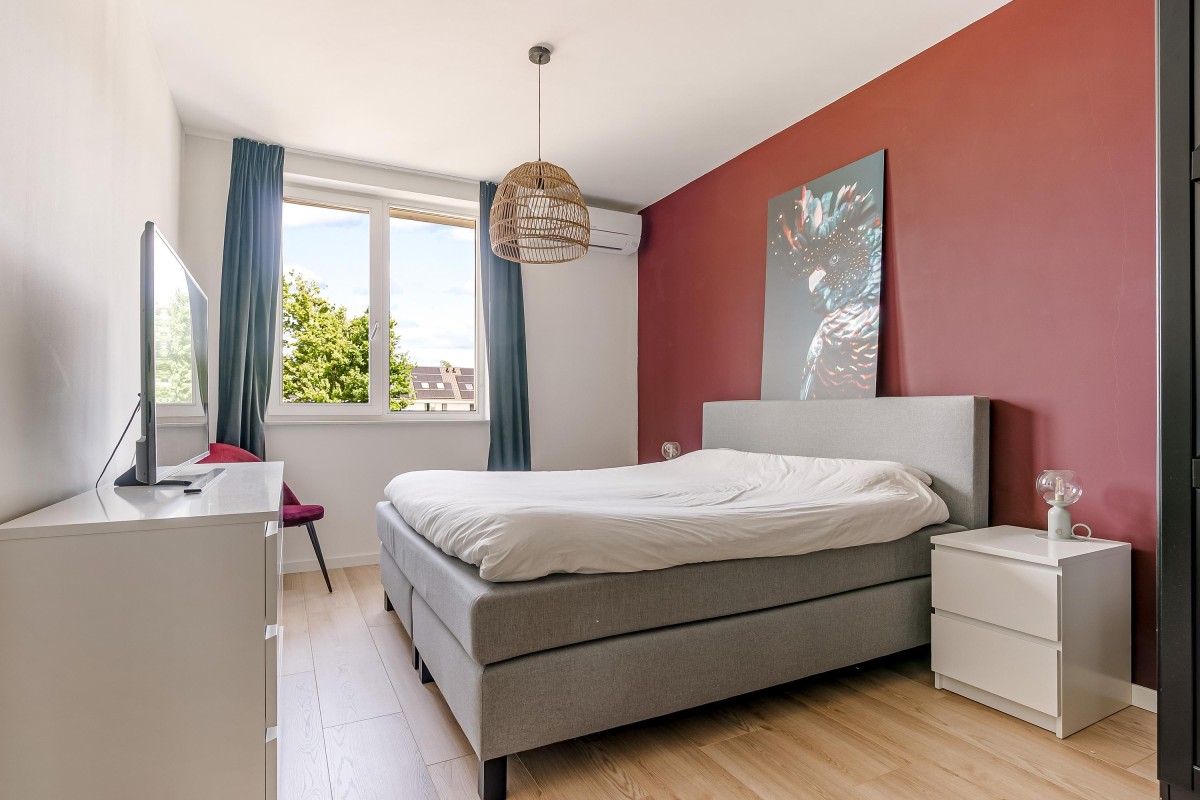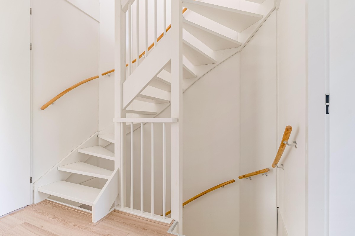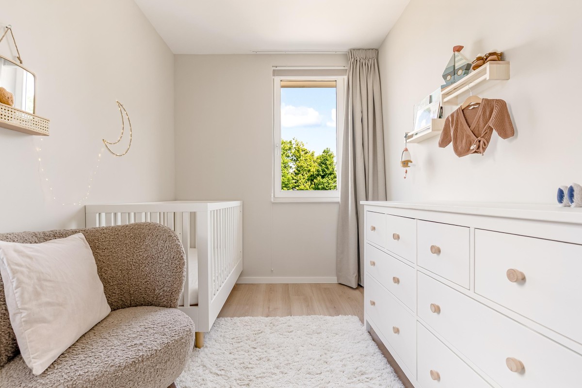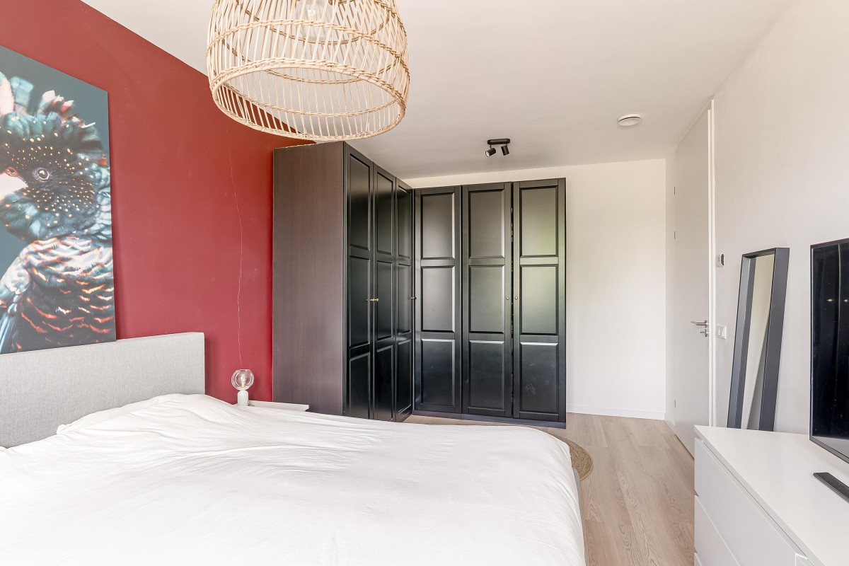 De gehele verdieping is afgewerkt met een laminaatvloer voorzien van vloerverwarming en strak gestuukte wanden.