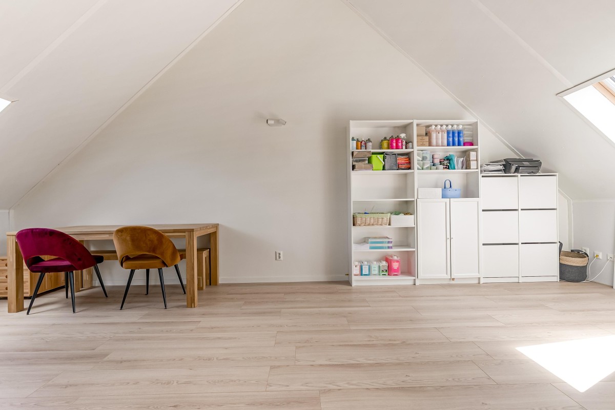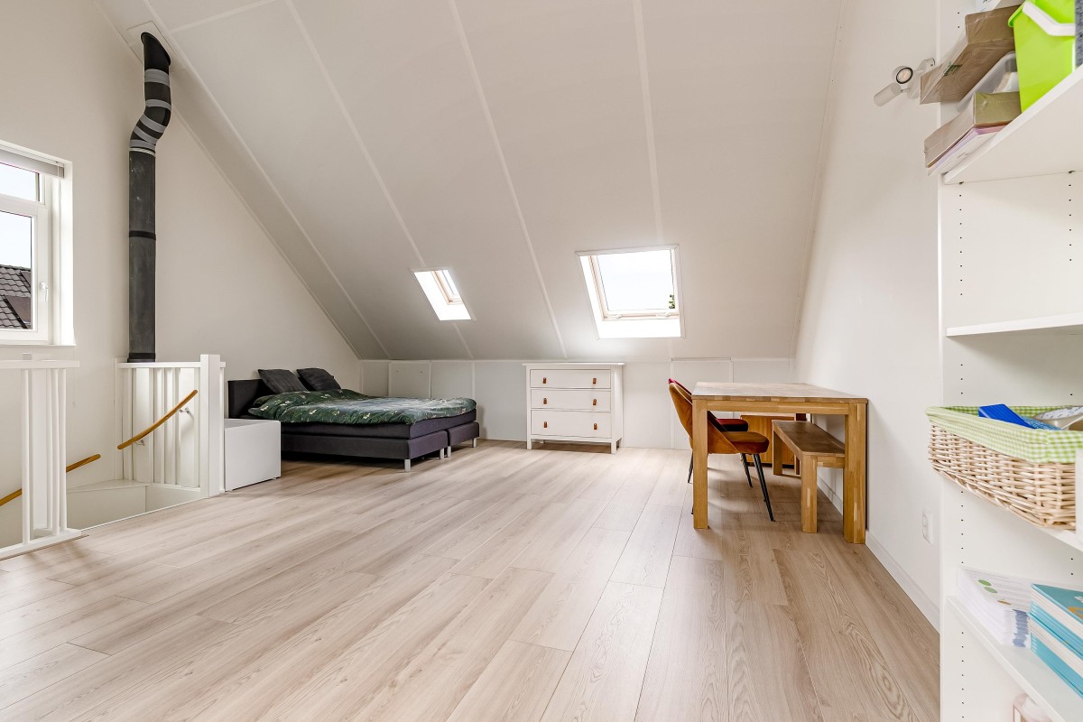 De royale zolderverdieping is een open ruimte met volop mogelijkheden. Hier kunnen eenvoudig een vierde en zelfs een vijfde slaapkamer worden gerealiseerd. Er is een aparte wasruimte met witgoedaansluitingen en de technische installaties.