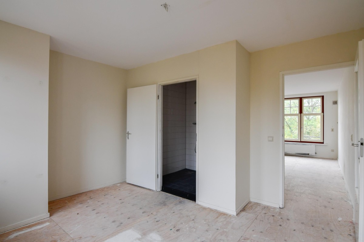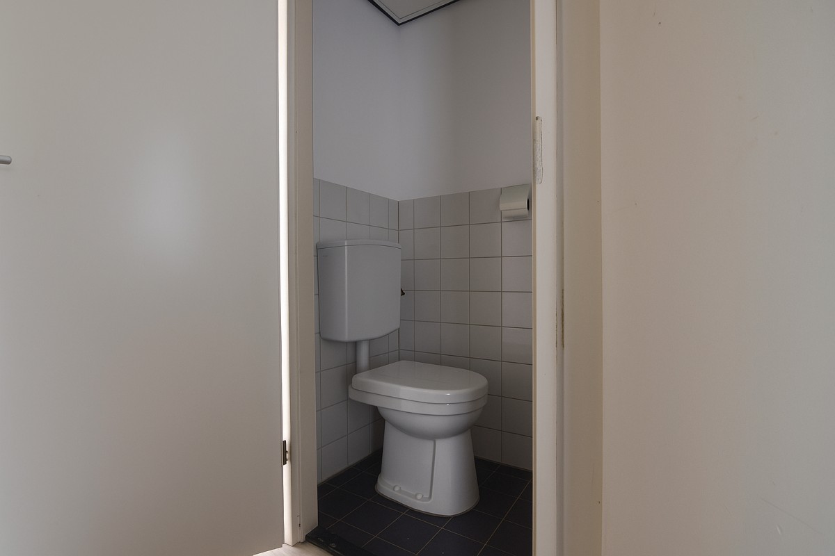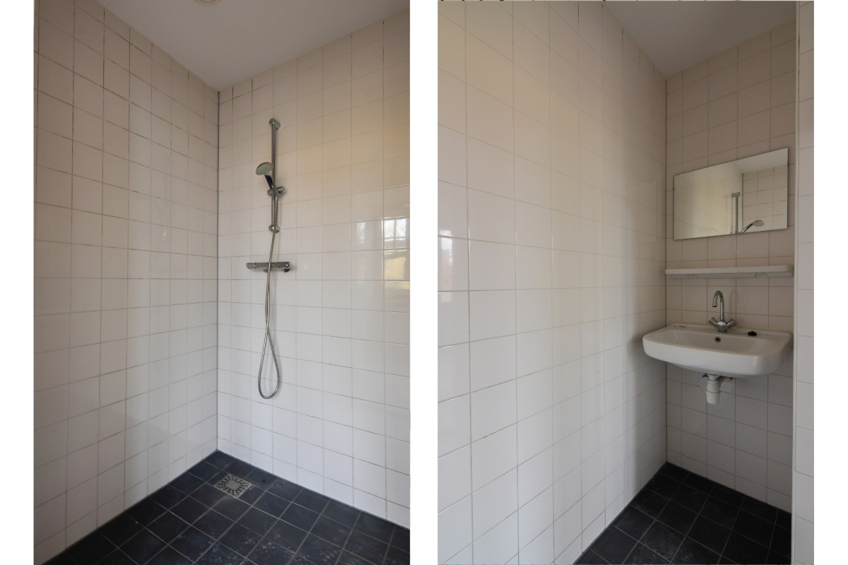 De slaapkamer aan de achterzijde biedt toegang tot de badkamer, voorzien van douche en wastafel. Het zonnige balkon op het oosten is er ook te bereiken via de openslaande klapdeuren. Naast het separate toilet en de meterkast bevindt zich de keuken die eveneens toegang heeft tot het balkon.