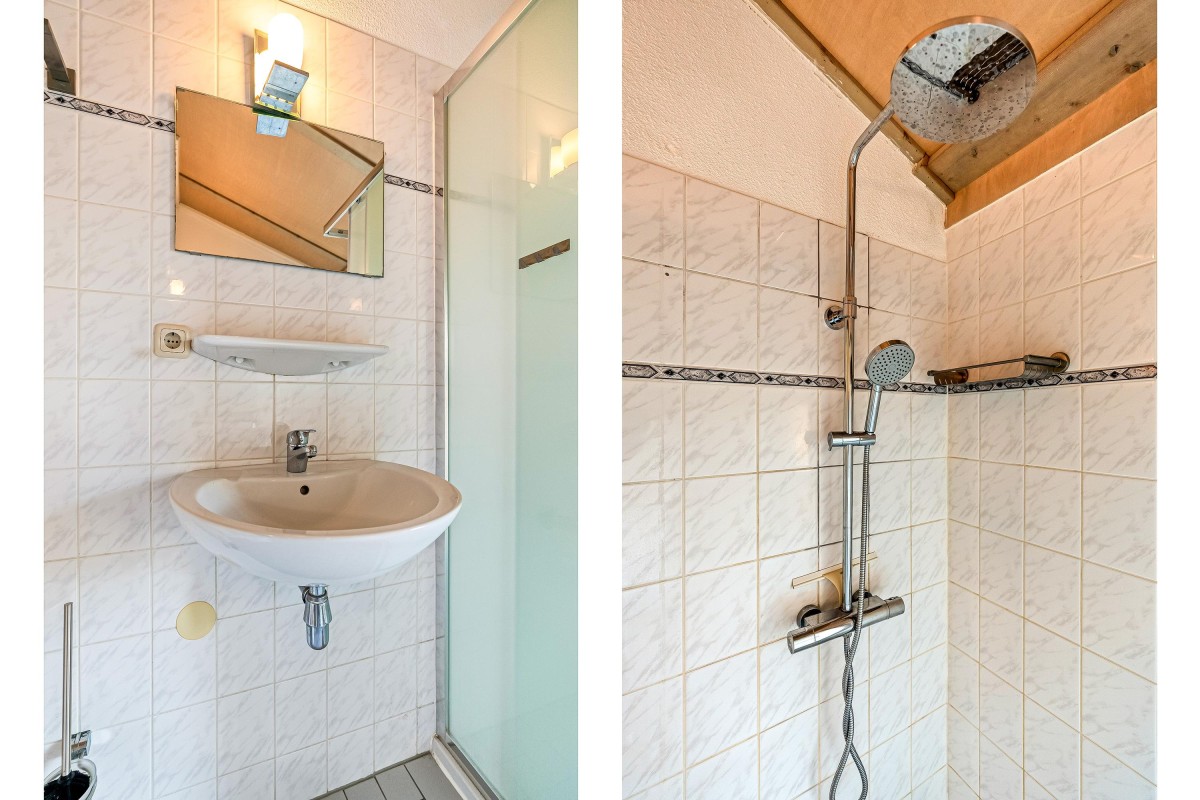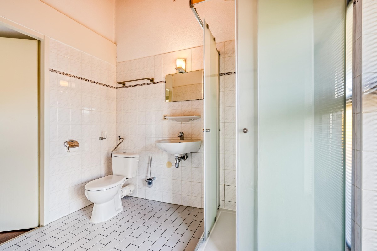 Badkamer: Met douche, wastafel en toilet