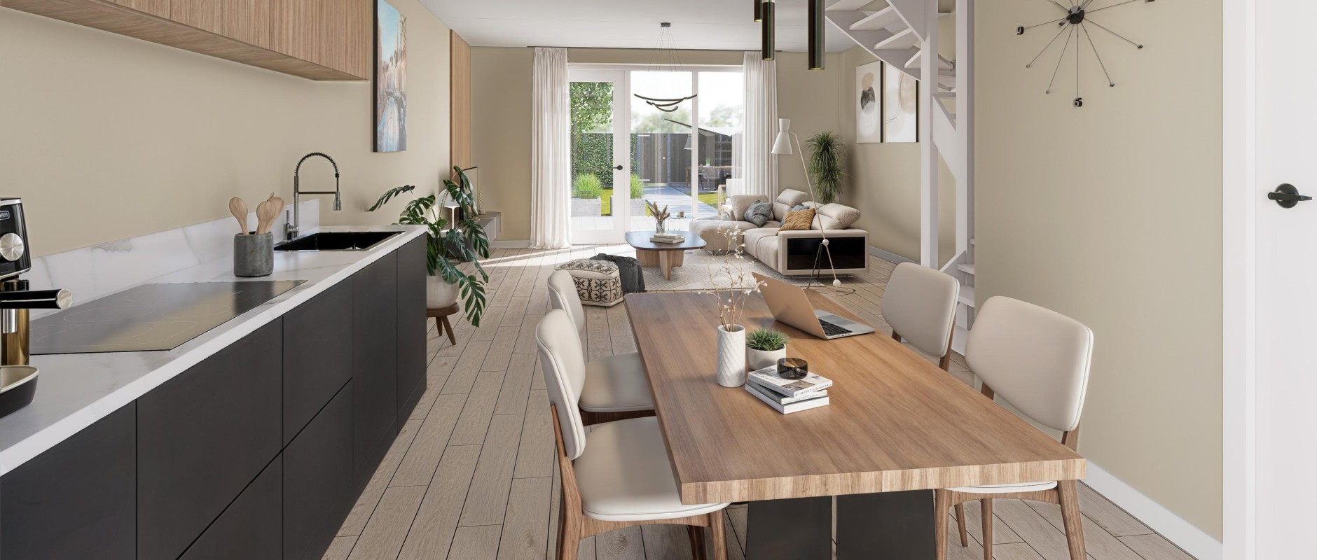 Het ontwerp van de woningen is eigentijds en landelijk met een verwijzing naar de Scandinavische woonstijl. In Scandinavië omarmt men de kunst van eenvoudig en harmonieus wonen, waar de natuur als een verlengstuk van het dagelijkse leven dient.