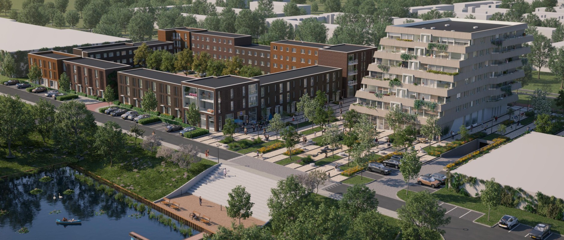 De ambitie is om het gebied om te toveren tot een kwalitatief hoogwaardige en levendige woonbuurt voor diverse doelgroepen. Onderdeel is een prachtig, parkachtig plein dat grenst aan het water. Het plein vormt een belangrijke schakel aan de brede loper langs De Noord en zoekt tegelijkertijd aansluiting met de groene parkachtige zone 'Langs de Vaart'. Het gaat daarbij om de verbinding tussen het station en het bruisende centrum van Dronten enerzijds en de verbinding tussen De Noord en de rustgevende binnenhaven anderzijds. Kortom, een gebied vol groene en stedelijke dynamiek: dat is een plek waar u wilt wonen.