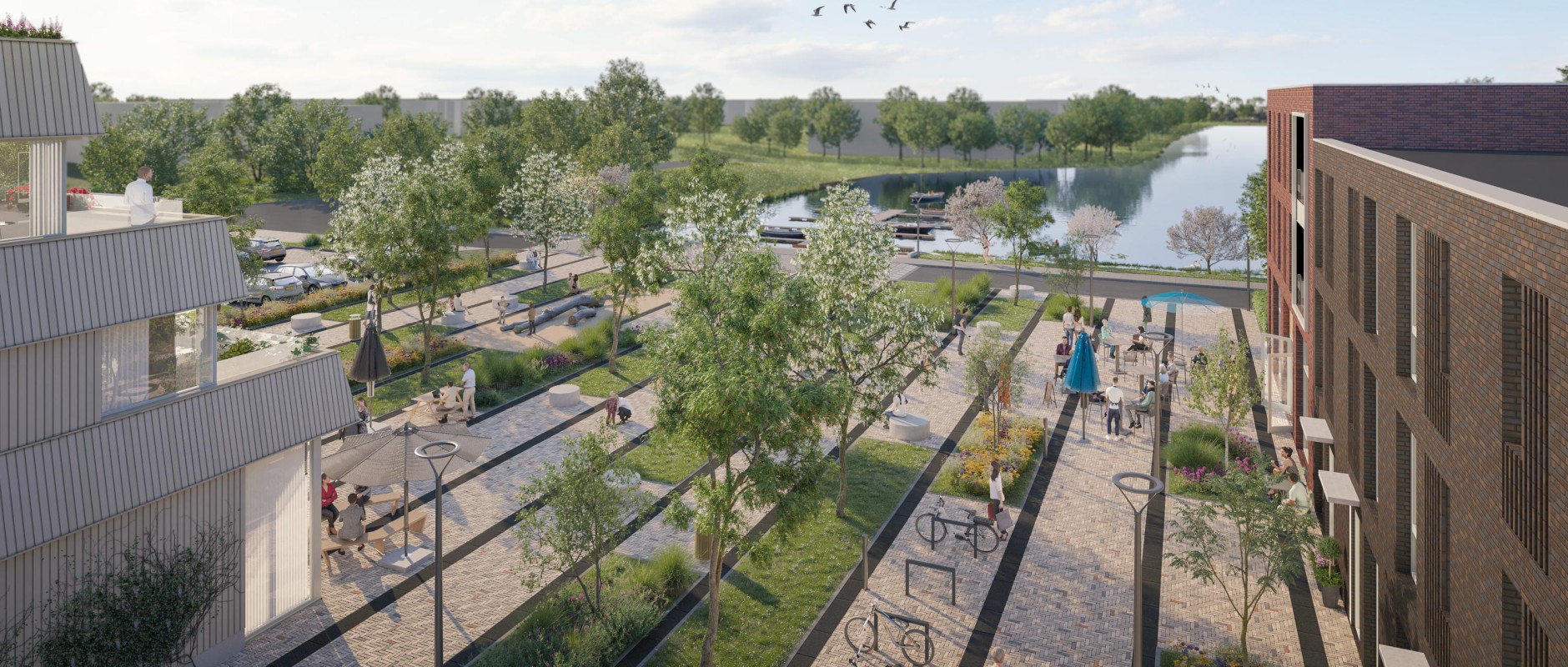 De ambitie is om het gebied om te toveren tot een kwalitatief hoogwaardige en levendige woonbuurt voor diverse doelgroepen. Onderdeel is een prachtig, parkachtig plein dat grenst aan het water. Het plein vormt een belangrijke schakel aan de brede loper langs De Noord en zoekt tegelijkertijd aansluiting met de groene parkachtige zone 'Langs de Vaart'. Het gaat daarbij om de verbinding tussen het station en het bruisende centrum van Dronten enerzijds en de verbinding tussen De Noord en de rustgevende binnenhaven anderzijds. Kortom, een gebied vol groene en stedelijke dynamiek: dat is een plek waar u wilt wonen.