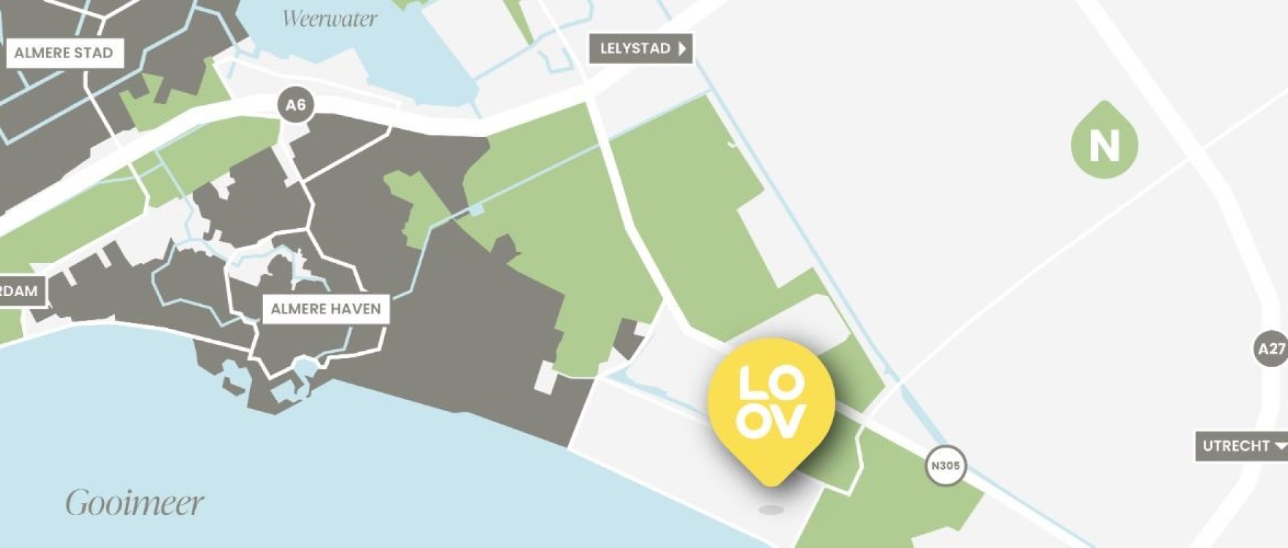 In LOOV vind je alles wat je zoekt. Water, bos en gemak. Zo zitten de supermarkt en de drogist letterlijk bij je om de hoek. En via de A6 ben je in een mum van tijd in Amsterdam, Lelystad of Utrecht. Wat wil je nog meer?!