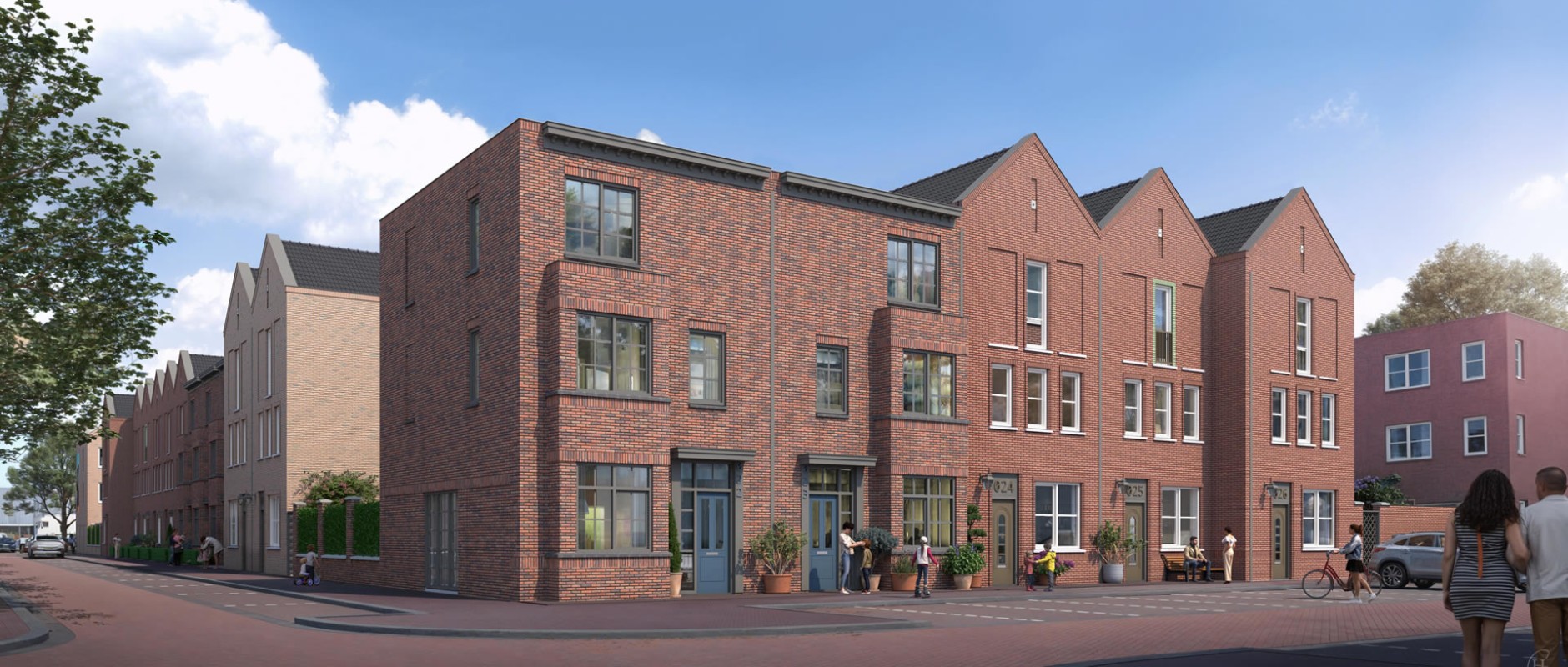 In het hart van het Europakwartier Oost, op loopafstand van station Almere Poort, verrijst een uniek stukje stad met de sfeer van New York’s Brooklyn: robuuste gevels, speelse architectuur en volop groen. New Brooklyn Bridge vormt hierin een echte eyecatcher, met 26 karaktervolle eengezinswoningen verdeeld over drie woonblokken.