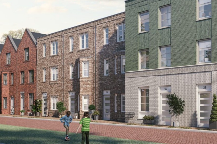Stoere woningen met een echte Brooklyn-vibe door de donkerrode steen, het puntdak en het gevarieerde gevelbeeld met rijk gedetailleerd metselwerk en vooruitspringende gevel. De keuken bevindt zich aan de voorzijde van de woning en de woonkamer aan de tuinzijde. De 4 koopwoningen met een beukmaat van 5,4 m2 hebben een verrassend veel leefruimte van begane grond tot aan de nok.