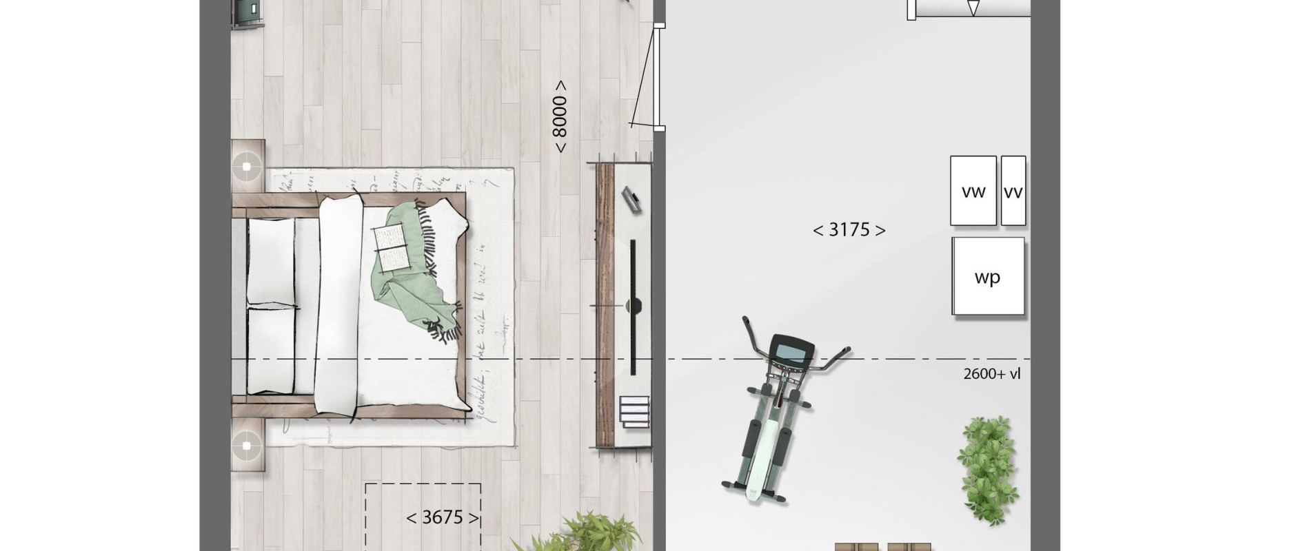 De woningen hebben allemaal een fijne open keuken centraal in de woning. Aan de ene kant kun je een eettafel kwijt waar je heerlijk kunt genieten van een kop koffie en een krant. En aan de andere kant creëer je een fijne zitplek met uitzicht op het terras. Via de woonkamer heb je ook toegang tot de slaapkamer. Aangrenzend vind je de badkamer met ruimte voor een douche, wastafel en tweede toilet. De badkamer is ook te bereiken via de hal. Via de trap in de hal bereik je de verdieping. Een overloop met veel ruimte voor spullen en een royale kamer die je kunt gebruiken als slaapkamer.