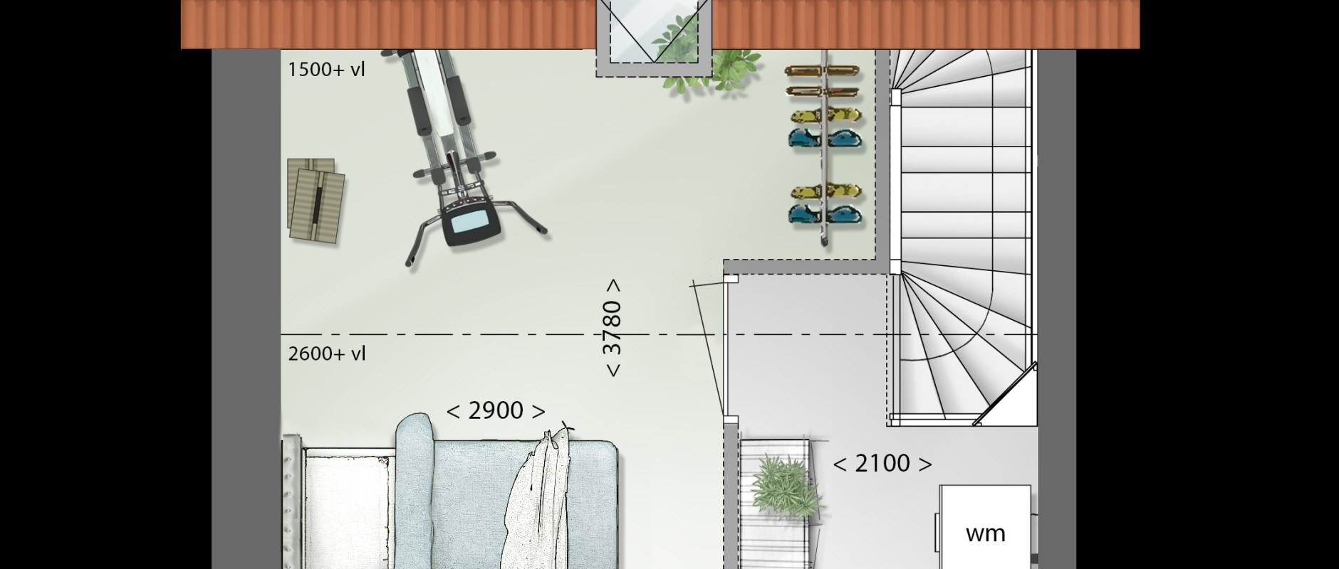 * inclusief badkamer met toilet, separaat toilet, tegels en sanitair