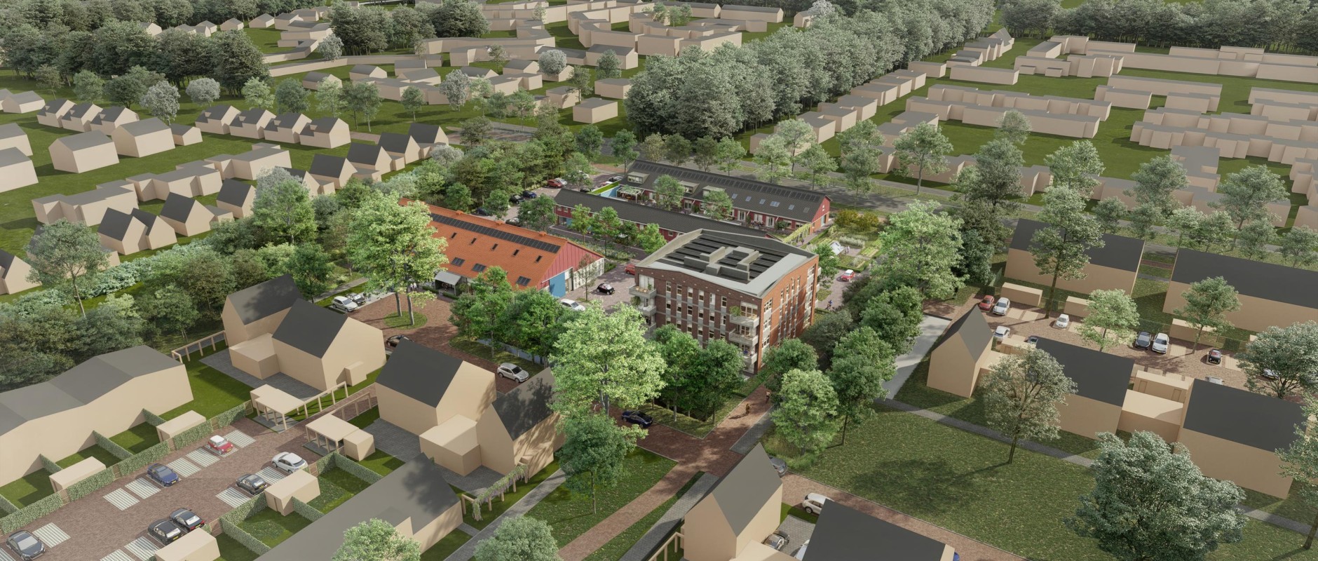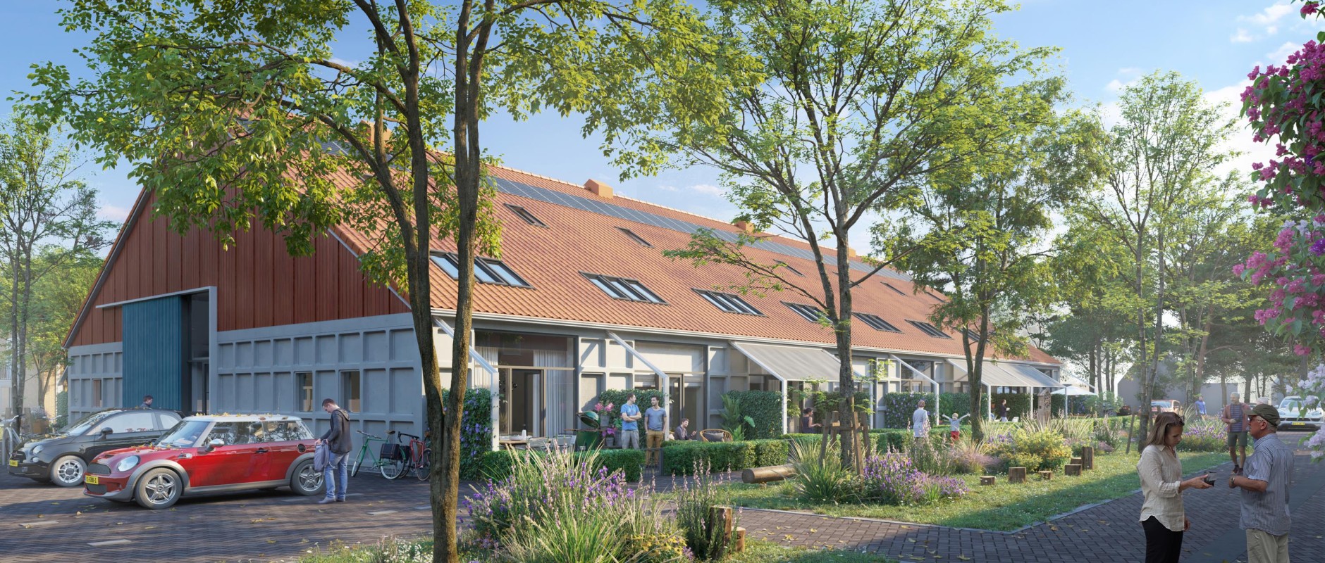 Op Het Erf vind je 16 Rug-aan-Rug woningen en verwijzen naar de historische schuur. Op deze plek stond de oude manege.