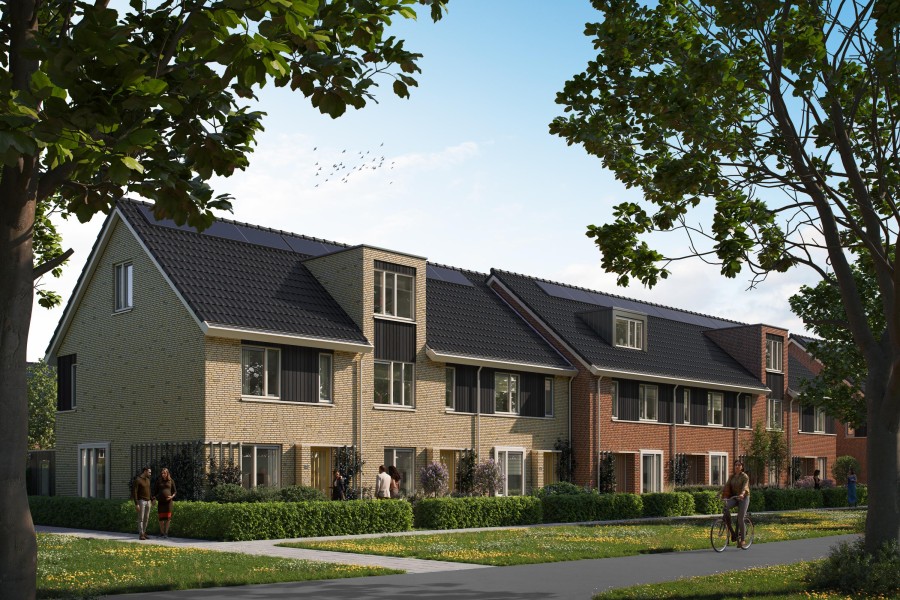 Maak kennis met woningtype Bies. Deze rijwoningen staan aan de rand van het plangebied georiënteerd, op De Zuid.