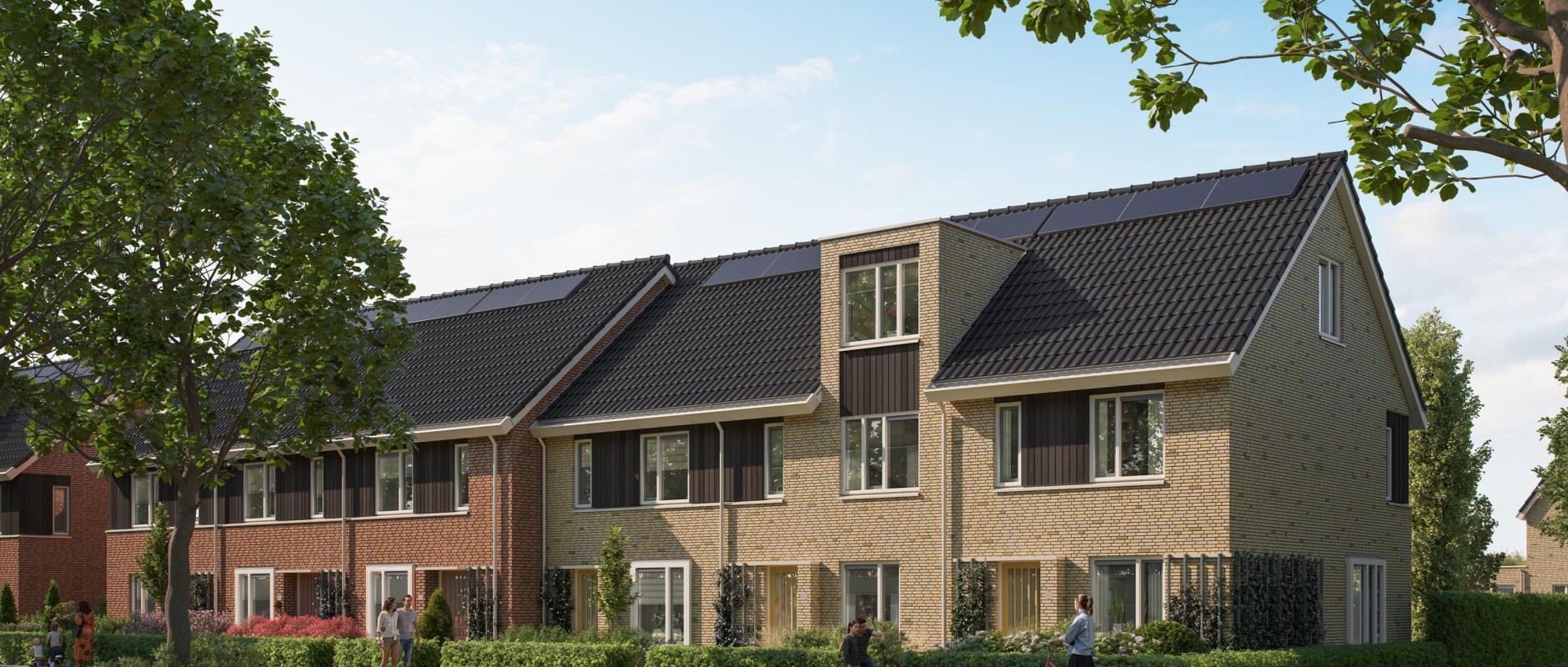 Maak kennis met woningtype Bies. Deze rijwoningen staan aan de rand van het plangebied georiënteerd, op De Zuid.