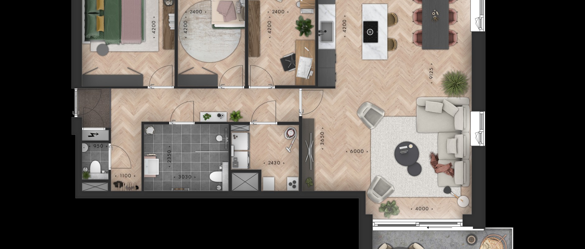 * Ruime hoofdslaapkamer met twee en extra royale (slaap)kamers
